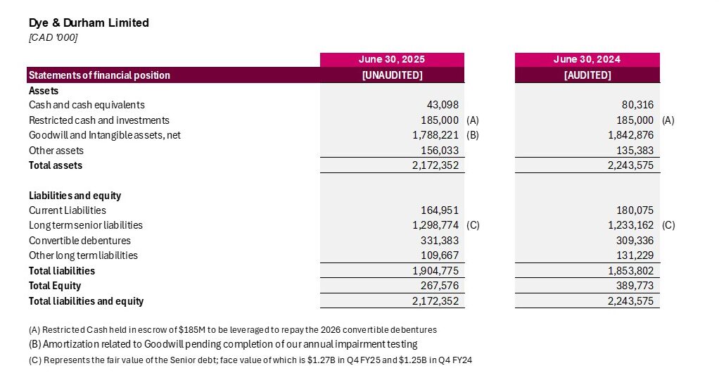 - EXHIBIT 2: FY 2025 BALANCE SHEET (CNW Group/Dye & Durham Limited)